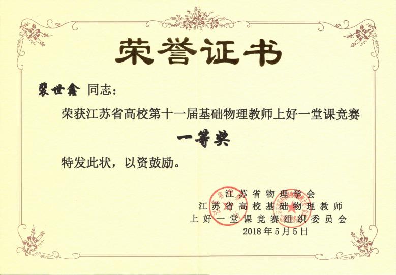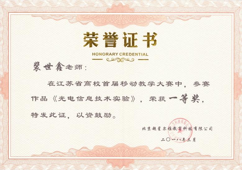 党员教师郑改革获江苏省第二届青年光学科技奖,江苏省教育科学研究成果三等奖;党员教师裴世鑫获评教学突出贡献奖,受邀参与教学督导组工作,先后在江苏省微课教学竞赛、江苏省微课程教学竞赛、江苏省基础物理讲课竞赛和江苏省移动教学大赛中获得一等奖,多次获得南京信息工程大学教学成果奖。
