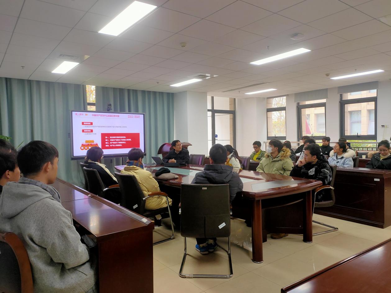 德育工作是引导学生成长成才的基础工程。为深入学习贯彻党的二十大精神,做好疫情期间研究生的思想引领与教育工作,11月30日上午,应用技术学院副院长、物理与光电工程学院2020级研究生德育辅导员陈玉林教授在藕舫楼为物电院研究生上了一堂题为“中国共产党为什么能?”的精彩专题党课。2020级研究生助理德育辅导员陈美红、研究生辅导员陈诚出席,物电院2020级全体研究生参加学习活动,党课由研究生秘书张佳欣主持。。