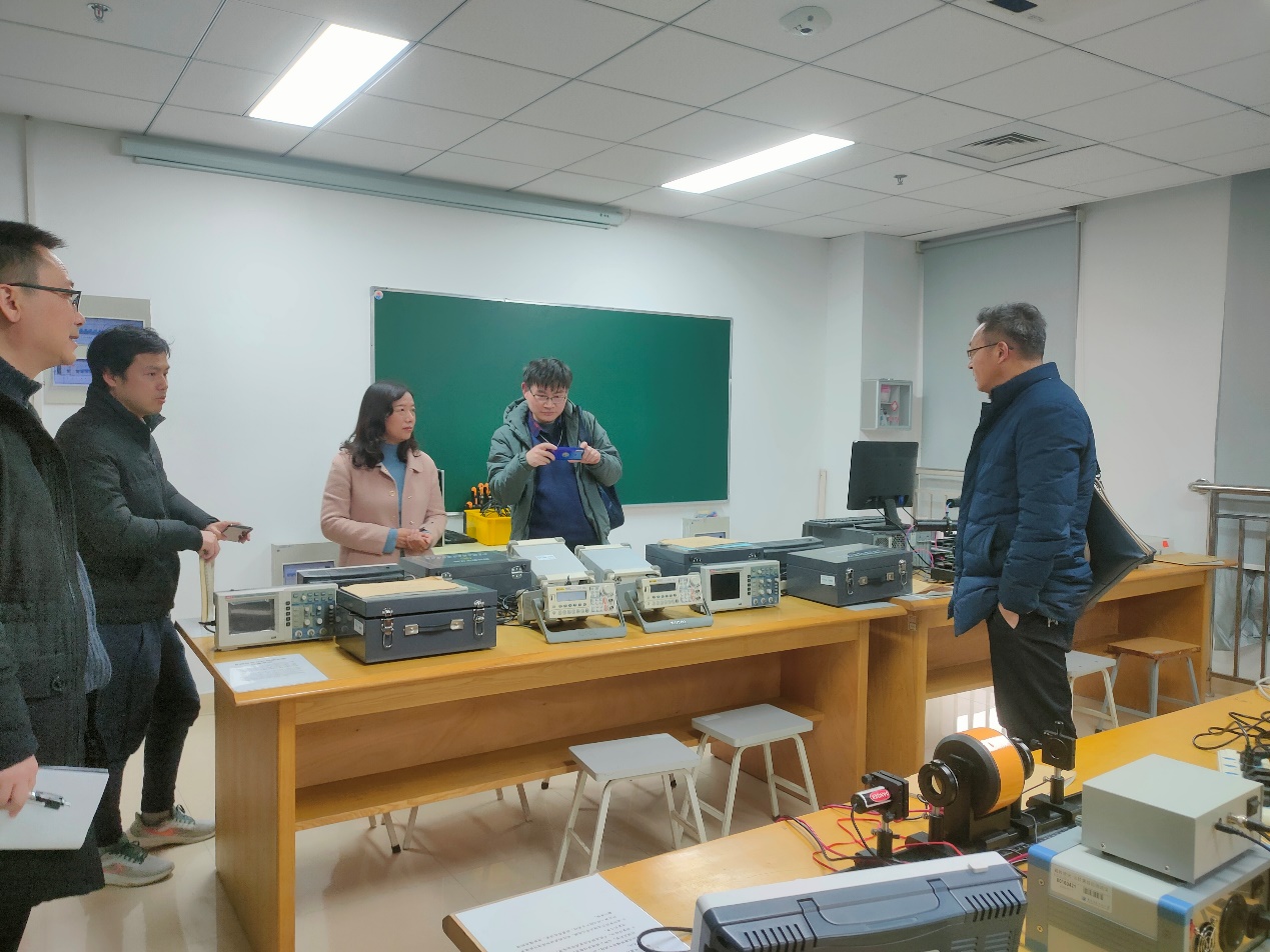 沈兆军、孔维宾两位专家就盐城工学院信息工程学院电子系和光电系专业建设与发展情况作了说明,并交流了在建设过程中的一些共性问题和困难。随后,来访人员参观了我院光电专业教学实验室,对于实验室建设、实验平台搭建、实验课程安排、在线课程与我院专业教师进行了细致讨论。