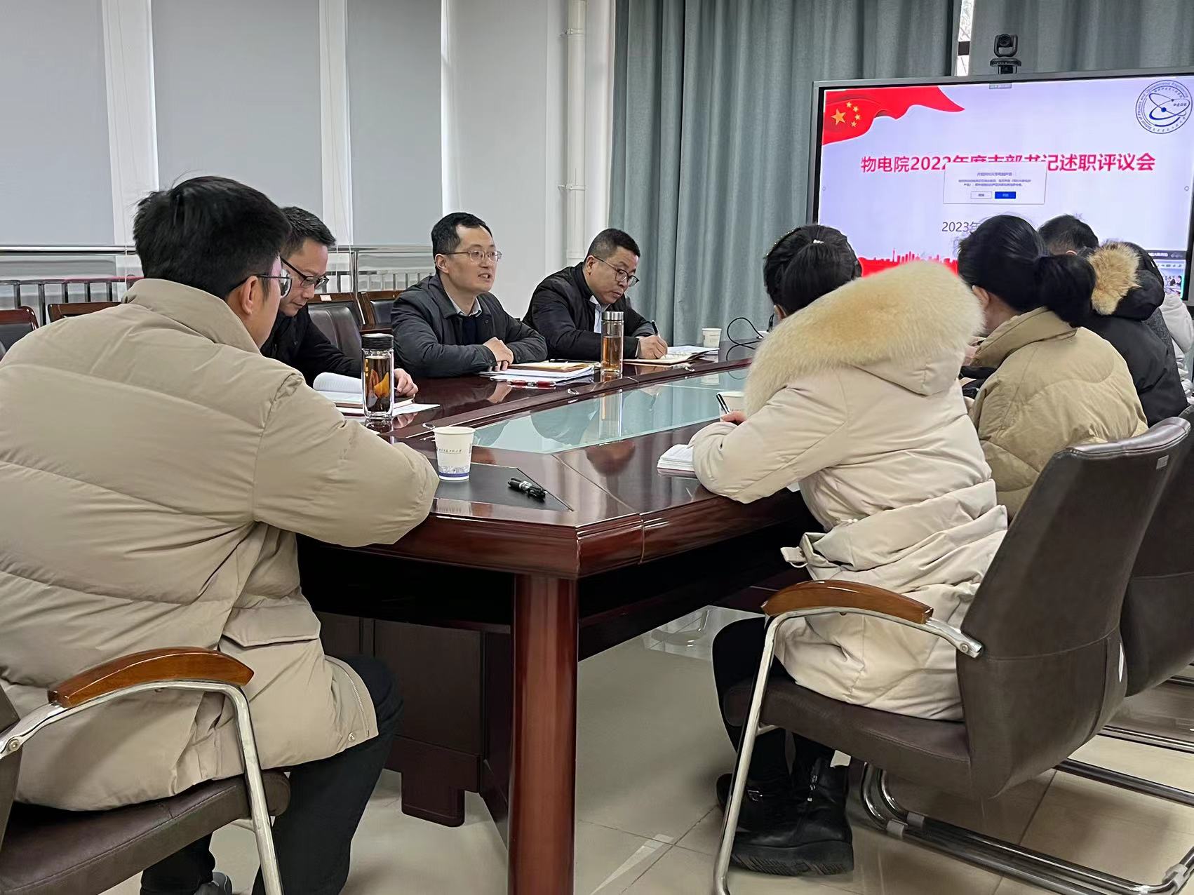 根据学校《关于开展2022年度党委(党总支)书记抓基层党建述职评议考核工作的通知》精神,2023年2月24日上午,物理与光电工程学院在藕舫楼330会议室召开2022年度党支部书记述职评议会。学院党委副书记(主持工作)徐志勇、党委副书记田智、党委委员赵德林、陈云云出席会议,学院全体支部书记参加会议。会议由徐志勇同志主持。