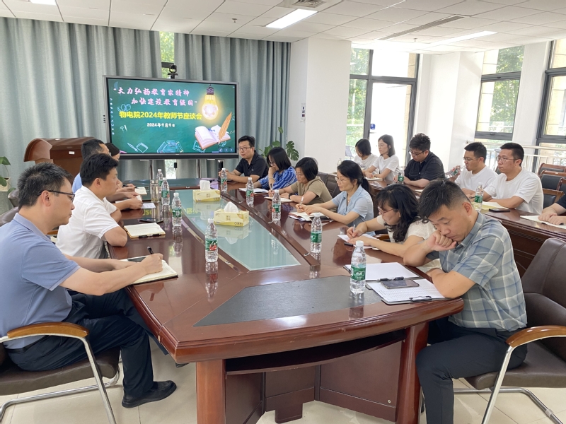 为庆祝第40个教师节,弘扬教育家精神,倾听教师意见,关心教师成长,9月9日下午,物理与光电工程学院在藕舫楼330会议室召开了教师节座谈会,学院领导班子成员、教授和近三年入职的青年教师代表出席座谈会。本次会议以 “大力弘扬教育家精神,加快建设教育强国”为主题,由学院党委副书记(主持工作)徐志勇主持。