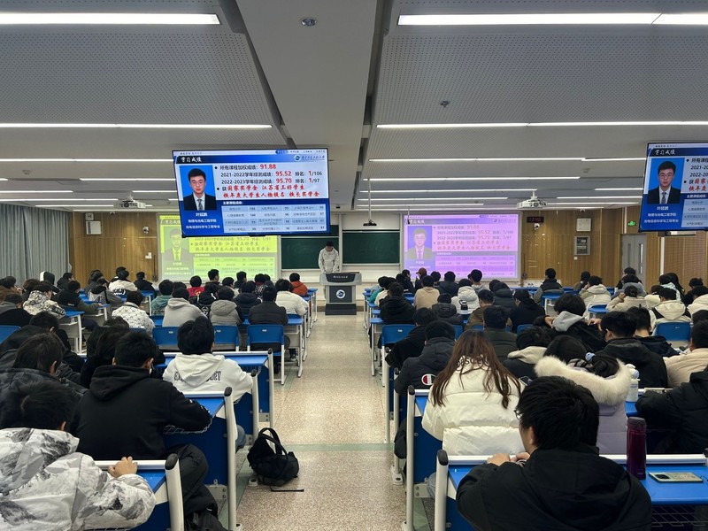 追光而遇,沐光而行。在优秀学子分享交流环节,保研至清华大学的叶延鹏同学以其在竞赛中的丰硕成果和深刻见解,为在场学子分享了“如何在关键时间点、做关键的事、出关键成果”的思考与感悟,让同学们感受到自主学习、提早规划、不惧失败的重要性;保研至南京理工大学的解文卓以“步履不停,行而无憾”为题,分享了他在学业和科研竞赛中的成长历程,鼓励同学们要积极进取,乐观向上;保研至复旦大学的翁宗恒讲述了自己高考复读再战、综评考入南信,而今又直博复旦的励志经历,他勉励学弟学妹们:珍惜当下,相信自我,持续努力,即使面对人生十字路口,也会有诸多选择和无限可能;收获多所国外高校offer的陈美薇同学则聚焦于“考研or留学”话题,分享了自己的抉择经历与感悟,并就如何拓展国际视野、比较学制、提高绩点、丰富简历、准备文书等方面提供了诸多实用建议。