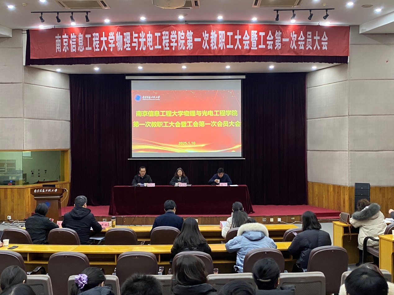 新年新气象,2025年1月10日,物理与光电工程学院第三届第一次教职工大会暨工会会员大会隆重召开。校工会副主席叶芬梅、学院领导班子成员和全体教职工参加会议。会议由学院党委副书记(主持工作)徐志勇主持。