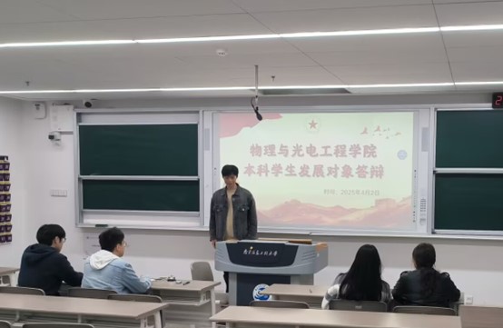 为推进基层党组织规范化建设,严把党员发展质量关,物理与光电工程学院本科学生党支部于4月2日在明德楼举行上半年发展对象公开答辩会,通过多维考核机制全面考察33名发展对象候选人的政治素养与综合素质。