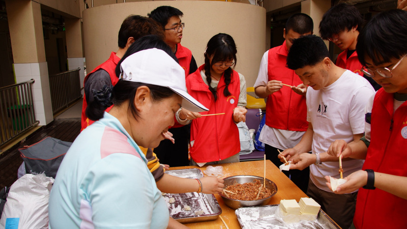 同学们在养老服务中心工作人员的带领下,带着水果等慰问品走访了每位老人,和老人们面对面交谈,倾听他们的故事。随后,志愿者团队同敬老院的老人们一起开展了植树活动,共同栽种的树苗,象征着生命的延续和希望的传递。接着,同学们和老人们分工合作一起包馄饨。剁馅、擀皮、包制……在大家默契的配合下,不消片刻,一盘盘美味的馄饨就呈现在了大家面前。活动最后,志愿者们为老人们表演了小品《四大才子》和歌曲《紫荆花盛开》,现场反应热烈,掌声不断。老人们的赞叹声和欢笑声也让志愿者们感受到了付出与奉献的快乐。