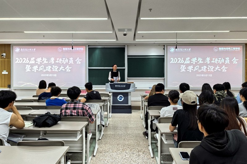 为扎实推进升学指导工作,强化学风建设实效,物理与光电工程学院于5月13日下午在明德楼N215召开2026届学生考研动员会暨学风建设大会。学院党委副书记兼副院长刘红梅、全体辅导员以及2025届优秀考研学生代表出席会议,2026届全体同学参加会议。