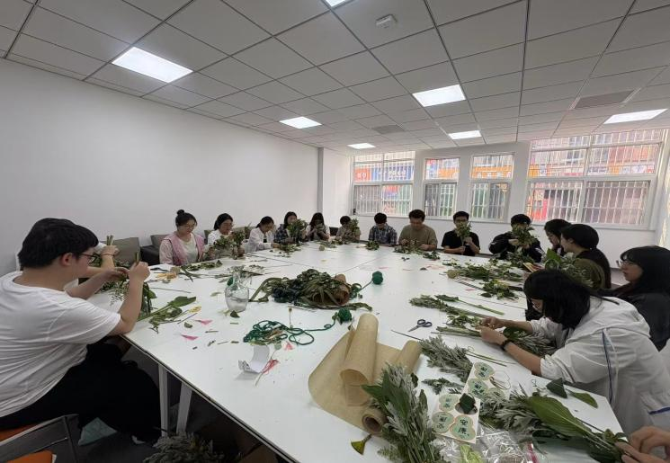 端午艾香时节,学院特邀大气院辅导员刘伟老师带领困难生制作艾草花环。手持青翠艾草,刘伟娓娓道来:“古人挂艾驱邪,今日我们以艾明志。希望你们像这艾草一样,祛除浮躁邪气,坚守人生正道。”学生们指尖翻飞间,不仅编织出寓意“祛邪纳吉”的花环,更感悟到传统文化中“守正不阿”的精神力量。