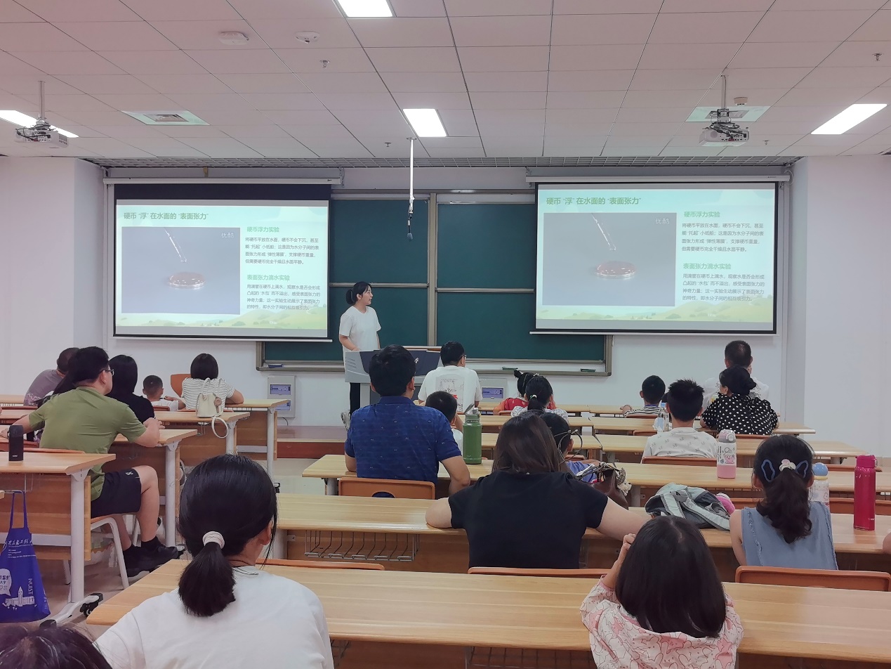 本次活动分为两个阶段。第一阶段由研究生志愿者给活动参与者作了题为《生活中有趣现象》的讲座,通过生活中的声音、光线、受力等现象向大家普及了科学知识。讲座互动环节,学生们纷纷踊跃提问发言,乐在其中;第二阶段是参观和操作科普实验仪器。在志愿者的指导下,每位参与者都动手操作了基地的科普实验仪器,不少家长还为学生录制了实验操作视频。通过本次活动,培养了学生观察自然现象、探究科学知识的兴趣。