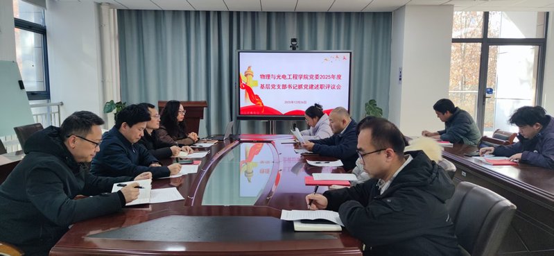 12月26日下午,物理与光电工程学院召开了2025年度基层党支部书记述职评议会。学院党委书记徐志勇、院长涂兵、副书记刘红梅,党委委员赵德林、陈云云出席会议。会议由徐志勇主持。
