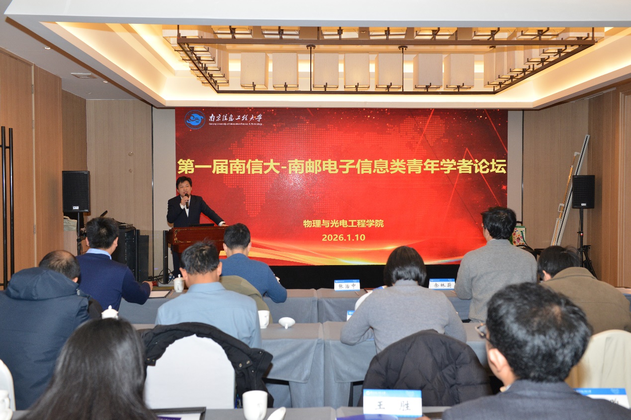 1月12日,第一届南信大-南邮电子信息类青年学者论坛在我校举办。本次论坛由我校物理与光电工程学院、电子与信息工程学院以及南京邮电大学电子与光学工程学院、柔性电子(未来技术)学院联合主办,首届活动由我校物理与光电工程学院承办。