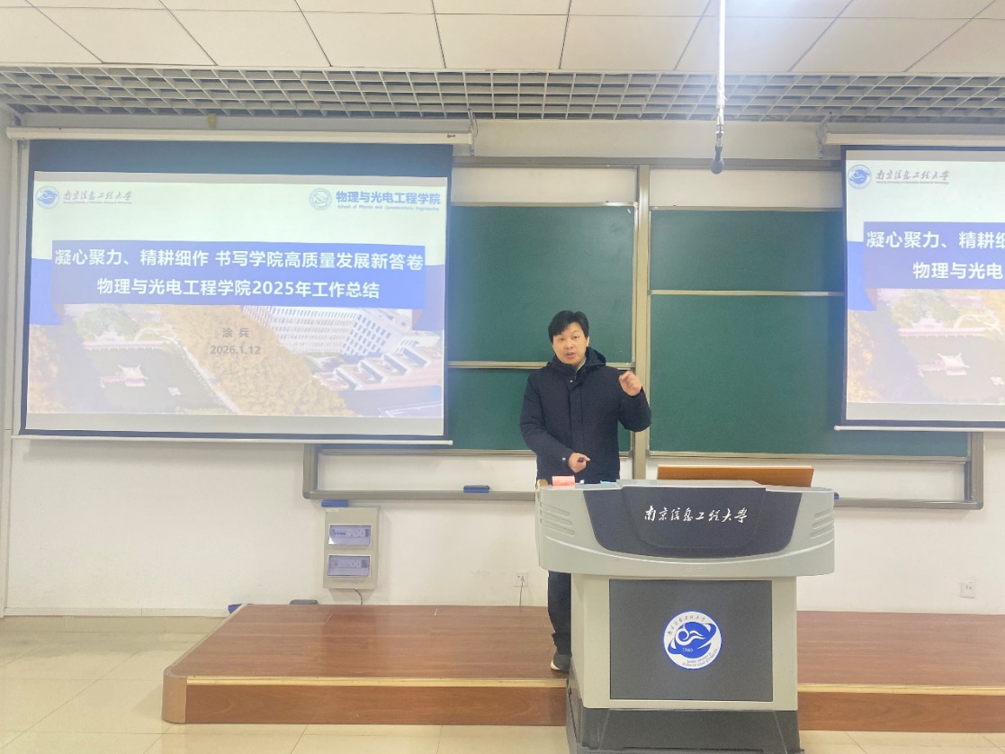 学院院长涂兵代表领导班子以“凝心聚力 精耕细作 书写学院高质量发展新答卷”为主题作2025年度学院工作报告,报告全面总结了2025年学院在党建思政、师资队伍、学科建设、科学研究、专业课程、人才培养和国际交流等方面取得的进展,分析了存在的问题与挑战,并提出了下一步的工作思路和举措,为学院下一步发展指明了方向。会上,涂院长还通报了学院年度经费使用情况。