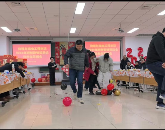 2026112日下午,物理与光电工程学院在藕舫楼205室隆重举办“迎新年茶话会暨趣味运动会”,以温馨而热烈的氛围正式拉开新一年序幕。学院领导班子与全体教职工齐聚一堂,共叙发展情谊,加强互动交流。