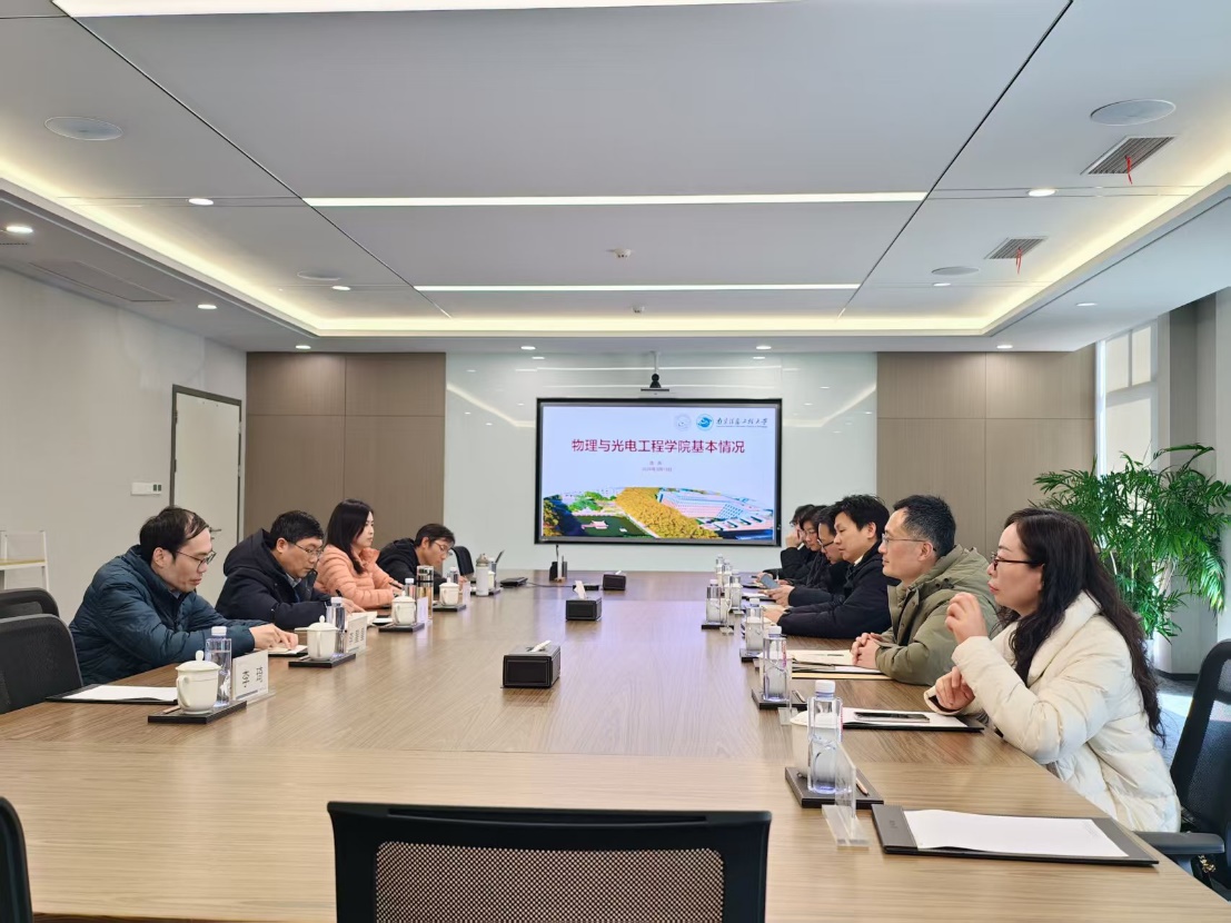 为深入贯彻落实国家关于高等教育产教融合、科教融汇的战略部署,紧扣本科专业建设与行业市场发展同频共振的育人目标,扎实推进学院本科专业建设与行业需求精准对接,3月13日,物理与光电工程学院院长涂兵、党委书记徐志勇带队,率学院领导班子和骨干教师代表一行7人赴南京全信传输科技股份有限公司开展访企拓岗专题交流,受到该公司的热情接待。公司首席专家李峰等5位企业领导和骨干出席会议,座谈会由全信公司科技质量部李斌副部长主持,双方围绕专业课程产教融合建设、实习实训共建、人才培养、毕业生就业素养、党建共建等方面展开了深度交流。