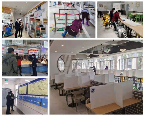 在各食堂,近万个餐桌隔板全部安装到位。饮食服务中心提前开会对开学前的餐饮工作进行部署,从员工返岗要求、返岗后的人员管理、食品原材料的采购加工售卖、学生的就餐引导、就餐环境消杀、新学期的菜价稳定、“三白”供应等各个环节都进行了细致的部署。开学前的消毒设施、物品摆放、环境卫生、菜品留样、防蝇防鼠设施、索票索证、工作人员健康证明等一系列工作措施均严格落实到位,并邀请主管部门南京市市场监督管理局来校检查指导,确保万无一失地做好开餐保障和疫情防控工作。