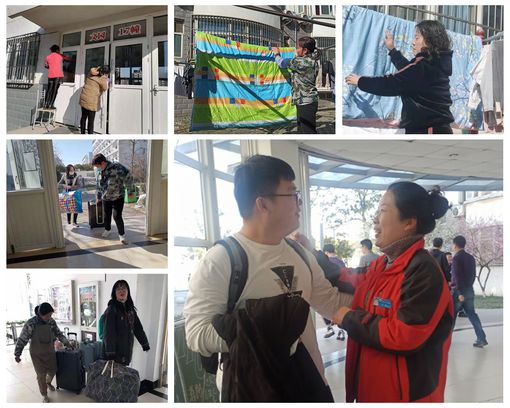 为确保开学后教学、生活正常有序开展,宿管中心提前对所有员工做好上岗前的14天健康监测及苏康码、14天行程漫游记录查验,2月17日全部员工到岗,做好宿舍楼内外卫生保洁、消毒消杀、公共场所设施的检查报修、门厅布置美化等学生返校前的各项准备工作。18日上午8点,所有宿舍楼开放;20、21日,学生分批返校,员工给同学们晒被子、提行李,提供各项便利服务,以积极饱满的工作状态迎接孩子们“回家”!
