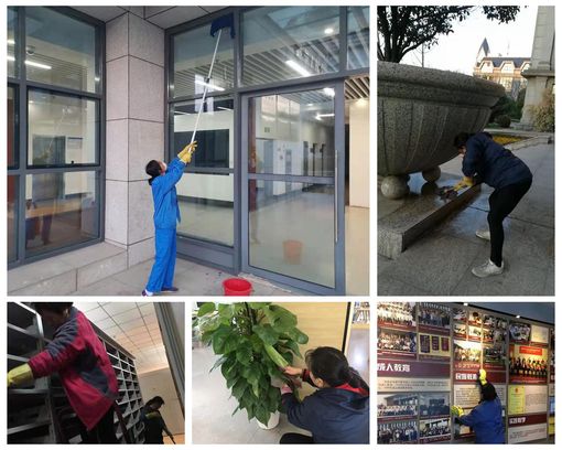 保障各楼宇卫生,地面、楼梯及扶手、电梯、桌椅等每天保洁消杀,对水龙头、门把手等手接触区域,每日使用75%酒精擦拭消毒……物业服务中心全力以赴、职责到人,为返校师生提供安全、卫生、整洁的校园环境。