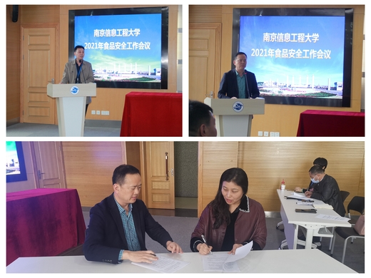 接着,饮食服务中心主任徐本能、商贸服务中心主任卜钰分别从不同角度特别是从工作中的重点、难点、痛点问题出发,介绍了我校食品安全工作开展的基本情况。期间,参会的校内食品从业企业法人签署了《食品安全承诺书》。