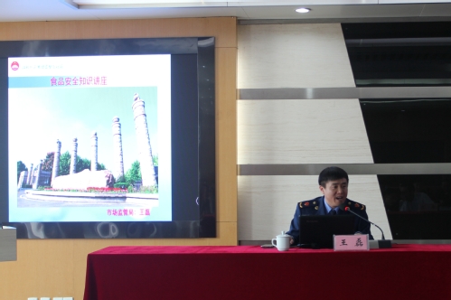 会议专门邀请南京市江北新区市场监督局盘城分局王磊科长做安全讲座。王磊从校地联动管理取得的成效讲起,结合我校餐饮服务实际情况,通过具体的案例,详细讲解了餐饮服务类经营主体责任、餐饮服务经营者食品安全管理制度等相关内容,强调要严格遵守《食品安全法》,养成规范、良好的习惯,做好高校餐饮服务。