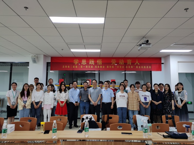 6月3下午,总务处(后勤服务总公司)第一党支部、苏州市东吴物业和商学院部分师生联合开展 “学党史、办实事”实践活动。本活动旨在通过“学思践悟,劳动育人”进一步发挥总务(后勤)在学校服务育人、劳动育人层级管理中的优势与作用,通过特色劳动实践活动载体,让学生在劳动实践中树德、增智、健体、育美之目的。总务(后勤)处长(总经理)朱庆峰、党总支书记屈家安、原处长(总经理)陈忠、东吴物业总经理韦昀志、副总朱士言、商学院刘婷婷,以及三个单位共30多位师生代表出席本次活动。
