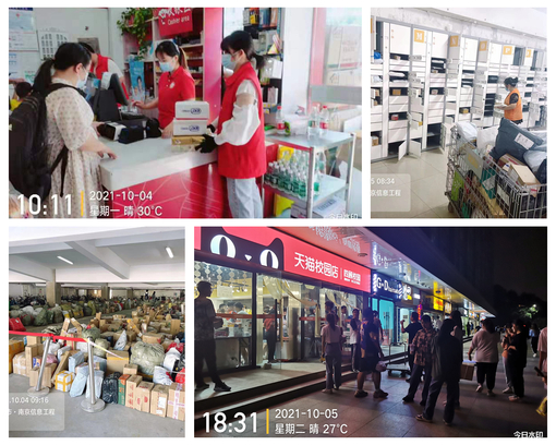 为确保新生报到期间校园经营秩序和谐有序,使新生能在校内享受温馨购物服务、购买安全优质商品,商贸服务中心提前安排管理人员现场检查督导,全面整顿经营秩序。为方便新生购买生活用品,在迎新前期,商超大量备货,尤其是日用品,还特设迎新文创产品摆放于文创专柜内;安排专人对自助类饮料、食品及蛋糕类原材料进行安全检查;对全校洗衣机进行深度消毒清洗并增配洗衣机数量;同时还制定了快递点保障方案,为避免快递积压,近邻宝快递点设置室外大件存放区,将包裹按照编号整齐码放在托架上,便于师生随到随取。据不完全统计,迎新期间天猫超市客单数9090单、京东超市客单数10185单,快递日均派件量1.5万件。