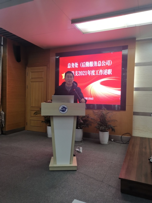 党总支书记屈家安同志代表总务处(后勤服务总公司)党总支述职。屈书记从加强理论学习和组织建设、加强党风廉政教育、深入开展党史学习教育、硬核防疫充分发挥党建领航作用、党政齐心推进总务后勤事业又好又快发展等方面对全年党总支工作进行了汇报。