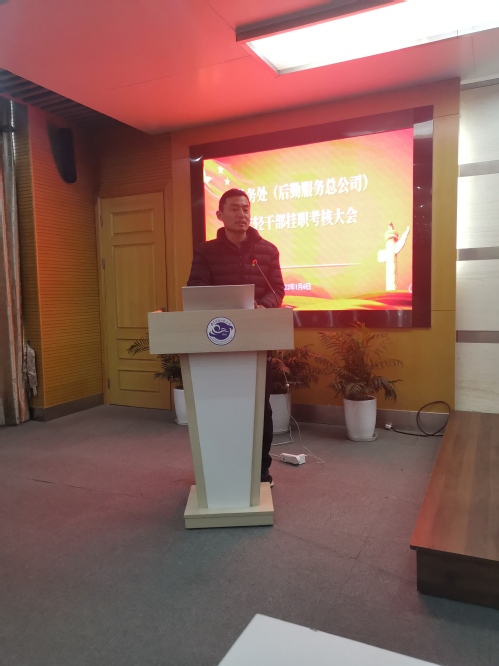 会议开始,总务处(后勤服务总公司)处长(总经理)朱庆峰同志代表领导班子进行述职,他以“不忘初心谋发展,凝心聚力谱新篇”为题,通过大量翔实的数据,从校园防疫担当有为、后勤综合改革全面推进、消费扶贫超额完成、餐饮服务持续优化、以生为本做好医疗服务、营造暖心宿管服务文化、规范校园市场业态管理、全面推进校园管理、日常维修及时到位、安全生产警钟长鸣等总务、后勤服务年度重点、亮点工作进行了汇报。并对工作中存在的问题与不足进行了客观深入的分析,明确提出了2022年发展思路和努力方向。