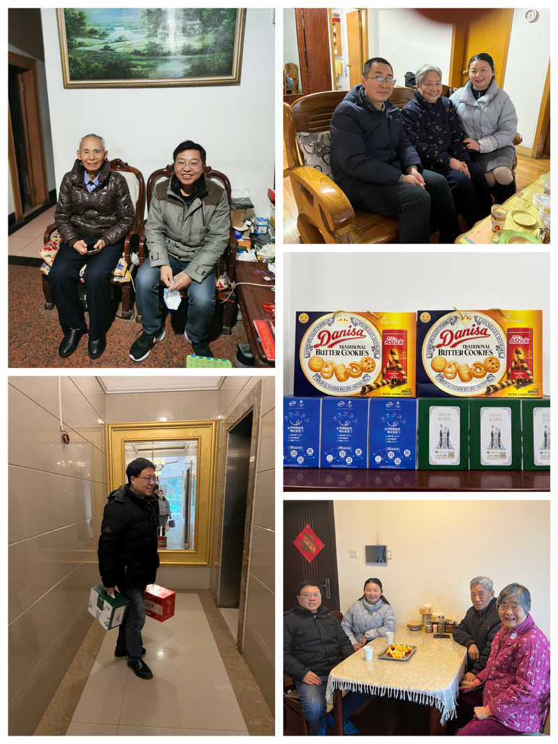 自1月22日起,朱庆峰处长、屈家安书记、张勇副处长、王亚平副处长、分工会主席和相关部门负责人分头行动,带上自产品牌信大包子、牛奶制品、糕点等慰问品,先后走访了21位80高龄的老干部、老职工,并送上新春问候。看到白发苍苍但精神矍铄的老同志,总务(后勤)领导们也格外开心,紧紧握住老同志的双手,感谢他们为学校发展所做的贡献。每到一处,大家忆往事、叙家常,关切询问他们的身体、生活情况,认真倾听他们对学校和总务(后勤)发展的建议和意见。