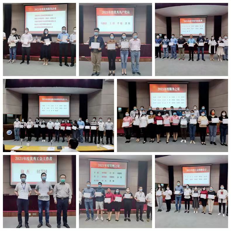 接着,总务(后勤)四位领导为5家年度“优秀服务企业”和70位分别获得“新冠肺炎疫情防控工作先进个人” “优秀共产党员” “优秀党务工作者” “优秀工会工作者” “工会积极分子” “年度考核优秀” “管理之星” “服务之星”的员工代表们颁发了奖杯和荣誉证书。