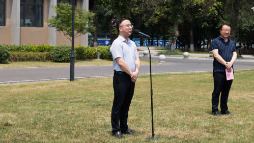 朱庆峰处长表示,校园管理智能化是历史发展的必然结果。我校绿化养护单位于今年3月份引进了无人割草机,经过多样点试运行,达到了预期目标。无人机在安防、商演等领域已有很多成功案例,我校结合校园管理智能化需求,拟增加无人机空中巡查校园模式,实现多维度、多时段监管,弥补人手、设备以及建筑物安全检查不足等管理真空。朱处表示,校领导对无人机社团通过开展劳动教育推进巡查校园工作更有持续性大力支持,也期待无人机社团以校园环境巡查为基点,借助青年学生智慧,实现跨领域合作,培养有情怀、有能力、有责任的新一代青年。朱处在讲话中还对校团委一直以来对总务后勤工作的大力支持表示感谢。