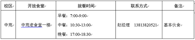 根据目前在校师生人数情况,自2022年12月28日起开放中苑老食堂一楼为在校师生做好餐饮保障服务工作,具体安排如下: