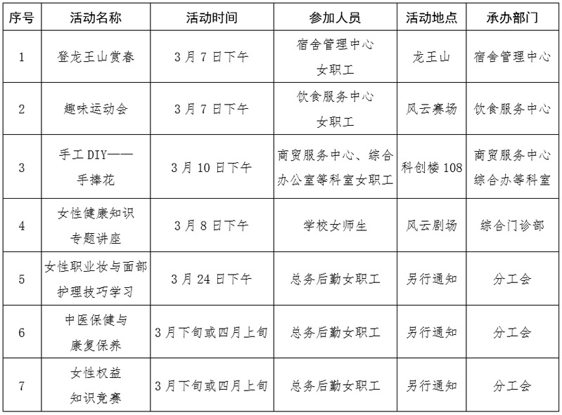 温暖的春天如约而至,在这阳光明媚的春光里,即将迎来女神们的节日。为庆祝一年一度的“三八”妇女节,展现女职工的风采,进一步增强团队凝聚力,激励女职工干事创业的精神,使女职工过一个祥和、充实、有意义的节日,丰富生活,快乐工作,以此推动总务后勤改革健康、和谐、可持续发展。总务处(后勤服务总公司)分工会近期开展“阳春三月,绽放芳华”女神节序列庆祝活动。