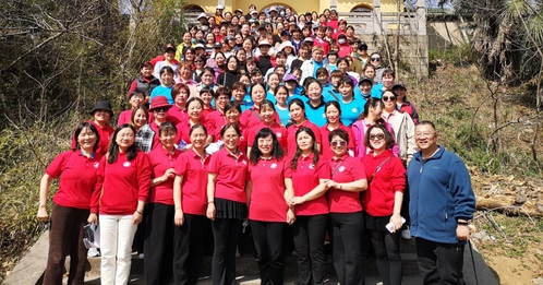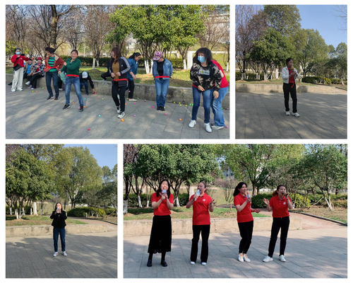 活动分两个环节:健步登山、才艺展示和趣味游戏。三月盛春,桃花十里,灼灼芳华,正是登高的好时节。随着登山指令的下达,大家三五成群,怀揣激动的心情,迎着和煦的春风,踏着欢快的脚步,共同享受大自然的秀丽风光,感受春天的美好气息。一路上盈盈笑语,一路上美景如画,大家相互勉励,相互加油,向着山顶前进。到达山顶后,大家纷纷留影合照,记录沿途的美景和难忘的时光。