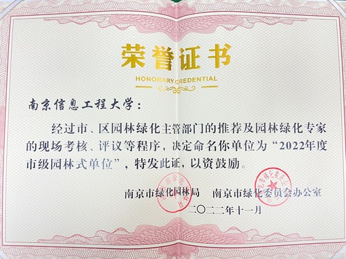 近日,经过南京市园林绿化行政主管部门审核,市绿化园林局组织的专家现场考核、 复核、评议等程序,校园绿化的组织管理、规划建设、管养维护、配套设施均满足园林式单位评比标准,我校荣获2022年度市级“园林式单位”荣誉称号。