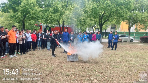 为切实提高我校后勤服务人员消防安全意识,增强消防必备技能和应急处置能力,4月27日,总务处(后勤服务总公司)在保卫处的支持下,特邀请了江北新区高新消防大队二级指挥员曹慰来校开展消防安全培训和消防演练。全校餐饮从业人员、宿舍管理员、物业管理员等约350人参加了活动。