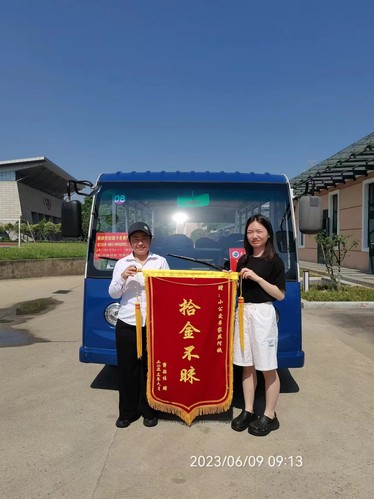 近日,小公交司机杨丽彬师傅、韦家燕师傅分别收到我校学生送来的锦旗。两位师傅在服务过程中捡到同学遗落的手机,第一时间报请总务处(后勤服务总公司)寻找失主,及时将手机归还到学生手中。