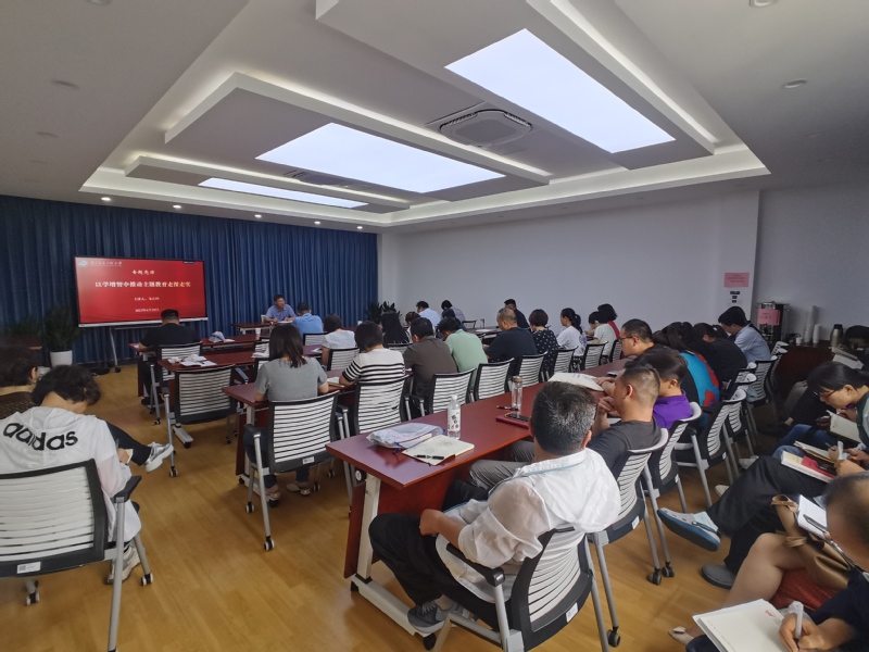 为扎实开展学习贯彻习近平新时代中国特色社会主义思想主题教育,提高干部队伍素质能力、推进学校高质量服务保障工作,6月28日下午,总务处(后勤服务总公司)党委书记朱庆峰以“以学增智推动主题教育走深走实”为题为处(公司)党员讲授专题党课,处长(总经理)沈伟峰、副处长(副总经理)李纯成、张志宏及全体党员同志参会学习。