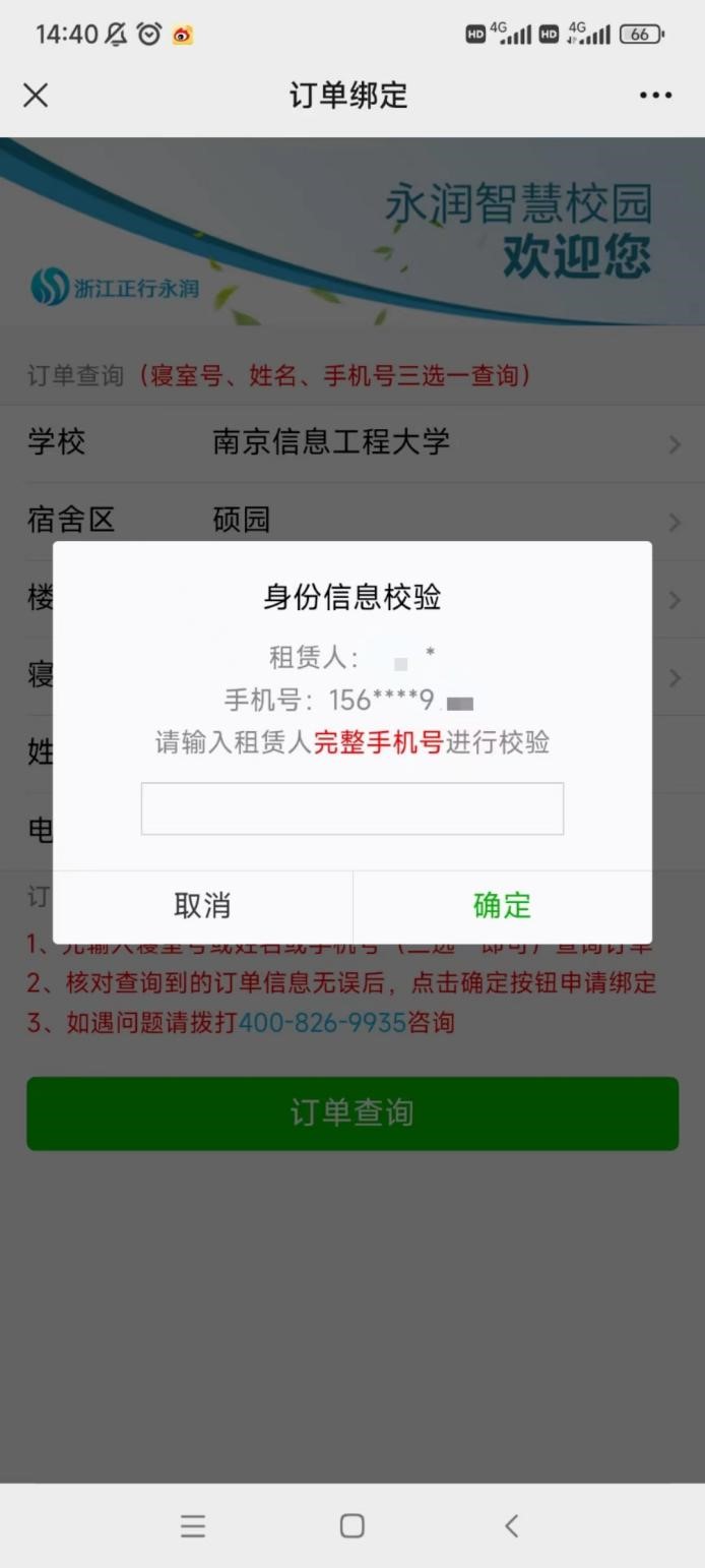 4、校验成功,信息校验成功后该订单自动绑定到此微信。