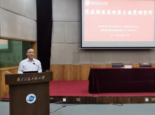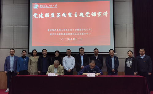 为进一步巩固扩大学习贯彻习近平新时代中国特色社会主义思想主题教育成果,10月12日下午,总务处(后勤服务总公司)与盘城街道社区卫生服务中心在长望楼报告厅举行党建联盟战略合作签约仪式暨专题党课宣讲。总务处(后勤服务总公司)党委书记朱庆峰、处长(总经理)沈伟峰、副处长(副总经理)张志宏,盘城街道社区卫生服务中心党支部书记李玉奇、中心主任潘锋出席签约活动。会议由沈伟峰主持。