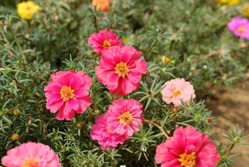 简介:太阳花又称大花马齿苋、半枝莲,石竹目马齿苋科马齿苋属植物。太阳花为一年生草本,高10-30厘米。茎平卧或斜升,紫红色。花单生或数朵簇生枝端日开夜闭。花瓣5或重瓣,红色、紫色或黄白色。花期6-9月,果期8-11月。原产巴西,中国公园、花圃常有栽培,扦插或播种均可。