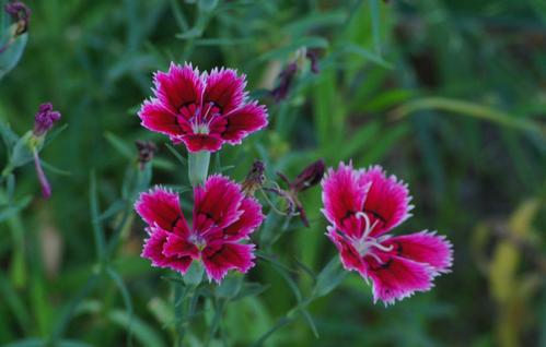 简介:石竹别名中国沼竹、石竹子花,石竹目石竹科石竹属植物。石竹高三十到五十厘米,全株无毛,带粉绿色。叶片线状披针形,顶端渐尖,基部稍狭,全缘或有细小齿,中脉较显。花单生枝端或数花集成聚伞花序。花瓣片倒卵状三角形,有紫红色、粉红色、鲜红色或白色,雄蕊露出喉部外,花药蓝色。花期五到六月,果期七到九月。石竹根和全草入药,清热利尿,破血通经,散瘀消肿,分布于中国东北、华北、西北和长江流域各省区。朝鲜亦有,世界各地广泛栽培。