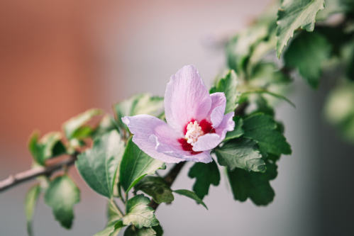 简介:木槿,锦葵科木槿属落叶灌木,其树木高大,小枝上有黄色星状绒毛,叶菱形卵状,托叶线形且有柔毛;花单生于枝端叶腋间,花萼和花均为钟形,花是淡紫色的,呈倒卵形,外面也有纤毛和星状长柔毛;果实卵圆形,有黄色星状绒毛;种子肾形,背部有黄白色长柔毛;花期7-10月。《本草纲目》记载:“此花朝开暮落﹐故名日及。”因为木槿花朝开暮落,所以又叫朝开暮落花,日及。