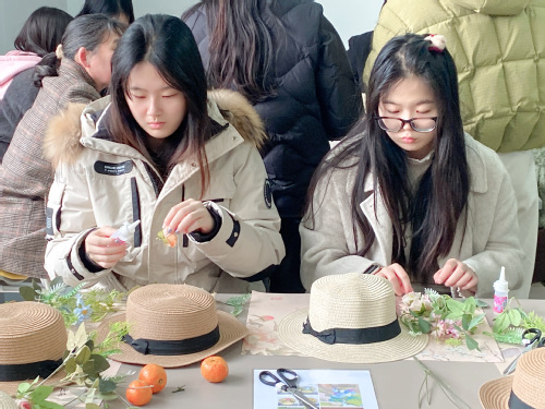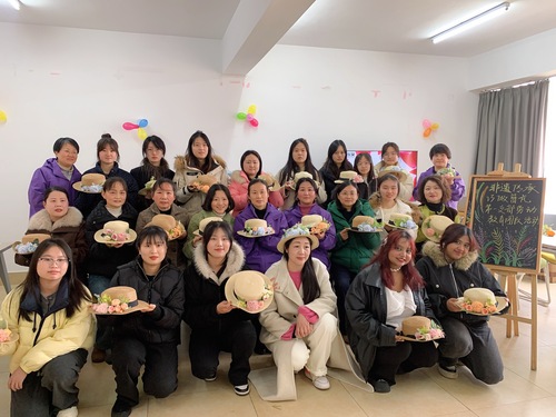 芳菲三月,以花为簪,绽放芳华。为庆祝第116个“三八”国际妇女节,总务处(后勤服务总公司)宿舍管理中心联合东吴服务产业集团为在校中外女学生、宿管阿姨代表共同举办了一场簪花体验活动。