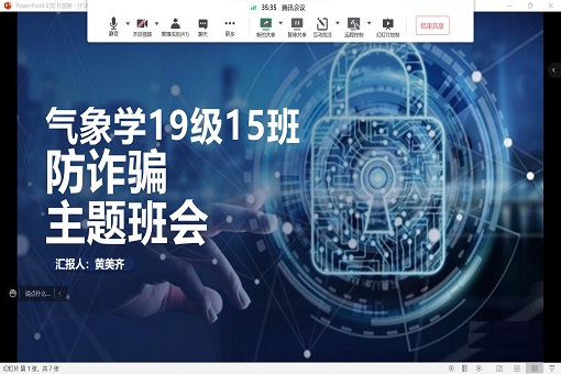 为进一步增强广大同学的网络诈骗防范意识,提高学生应对网络诈骗、电信诈骗的能力,切实保障同学们的财产安全,真正打通防诈防骗宣传工作的“最后一公里”,大气科学学院各班级于3月下旬围绕预防网络诈骗组织开展了主题教育班会。