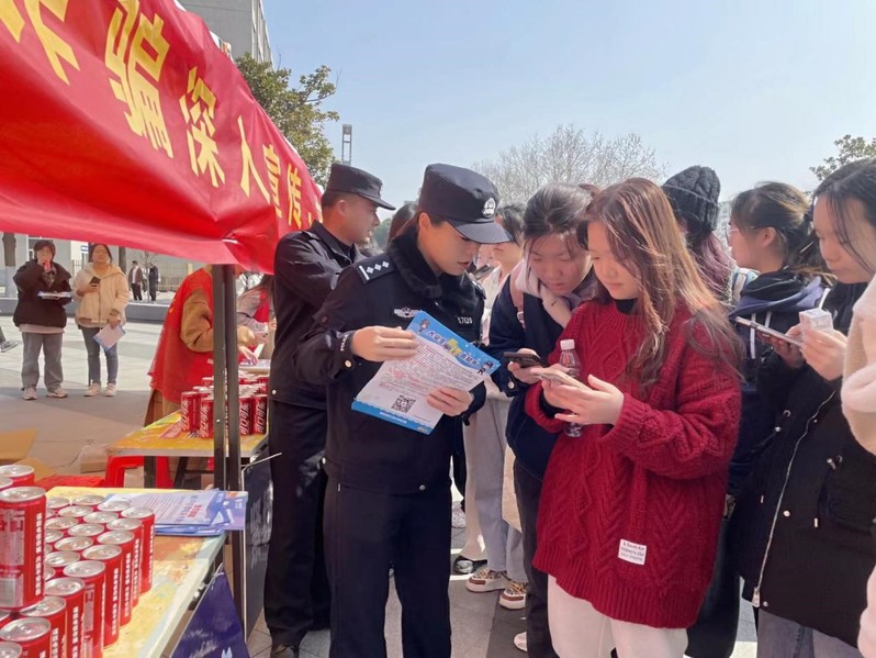 活动现场,驻校民警和保卫处老师一起向广大师生发放防电诈宣传资料,师生们积极响应,主动参与防范电信网络诈骗答题活动,关注“平安南信大”微信公众号,了解电信网络诈骗防范知识,并就经常遇到的电信网络诈骗问题向民警请教交流。驻校民警现场详细介绍了网络电信诈骗的常见类型、诈骗方式以及识骗方法、技巧等,要求大学生们要擦亮眼睛,随时保持清醒头脑,树立防诈、反诈意识,增强识诈、辩诈能力,守好自己的钱袋子,保护好生命财产安全。