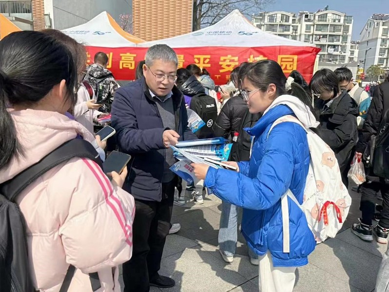 保卫处为学生分发防范电信网络诈骗宣传页
