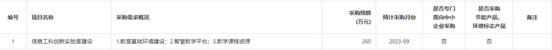 为便于供应商及时了解政府采购信息,根据《江苏省财政厅关于做好政府采购意向公开工作的通知》等有关规定,现将南京信息工程大学2023年9月(第2批)政府采购意向公告如下: