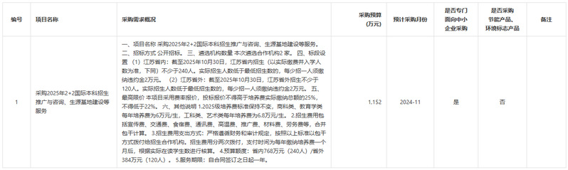 为便于供应商及时了解政府采购信息,根据《江苏省财政厅关于做好政府采购意向公开工作的通知》等有关规定,现将南京信息工程大学2024年11月(第2批)政府采购意向公告如下: