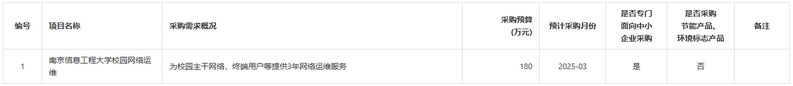 为便于供应商及时了解政府采购信息,根据《江苏省财政厅关于做好政府采购意向公开工作的通知》等有关规定,现将南京信息工程大学2024年11月(第3批)政府采购意向公告如下:
