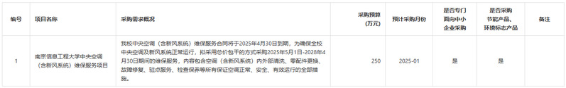 为便于供应商及时了解政府采购信息,根据《江苏省财政厅关于做好政府采购意向公开工作的通知》等有关规定,现将南京信息工程大学2024年12月(第1批)政府采购意向公告如下:
