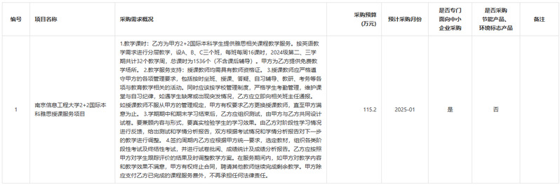 为便于供应商及时了解政府采购信息,根据《江苏省财政厅关于做好政府采购意向公开工作的通知》等有关规定,现将南京信息工程大学2024年12月(第2批)政府采购意向公告如下: